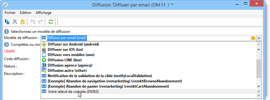 Vous pouvez aussi utiliser le menu Fichier > Actions > Exécuter le modèle de diffusion….