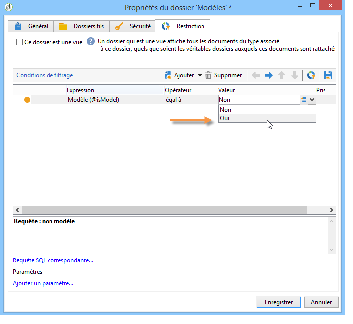 Cliquez sur l’onglet Restriction et ajoutez la condition de filtrage suivante : @isModel = true.