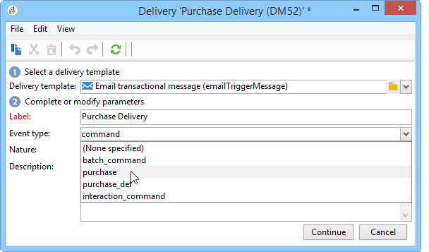 전송할 메시지와 일치하는 이벤트 유형을 선택합니다.