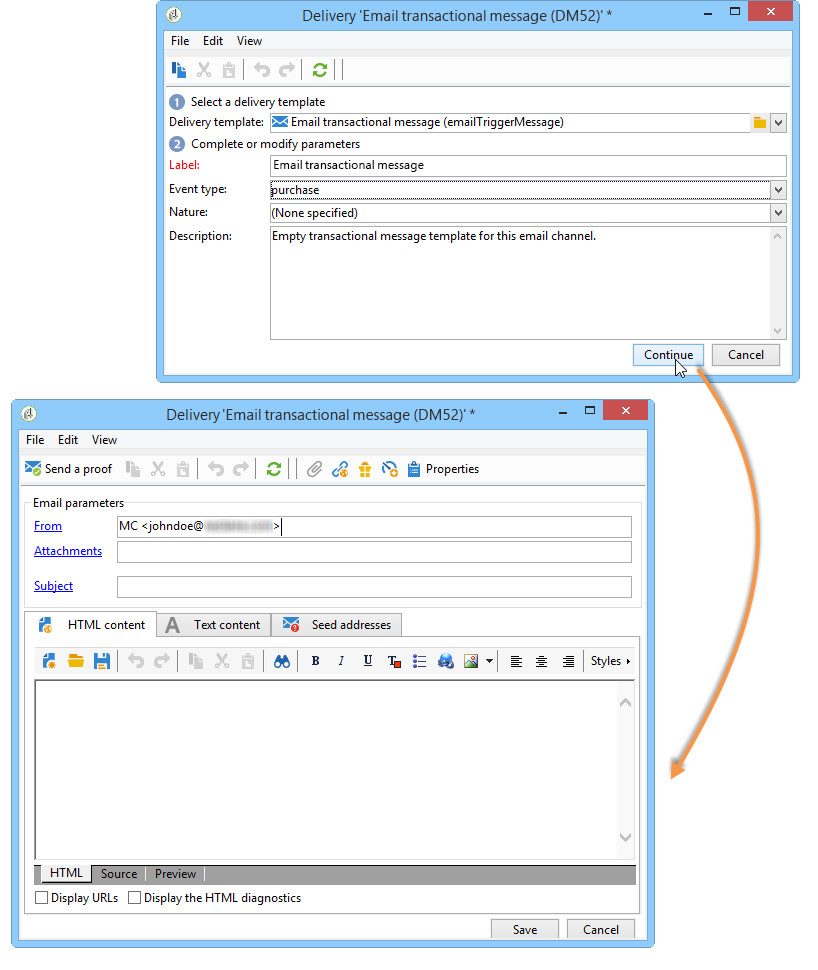 트랜잭션 메시지 콘텐츠의 정의는 Adobe Campaign의 일반 게재와 동일합니다. 예를 들어 이메일 게재의 경우 HTML 또는 텍스트 형식으로 콘텐츠를 만들거나 첨부 파일을 추가하거나 게재 개체를 개인화할 수 있습니다. 자세한 내용은 이메일 게재 제2장.