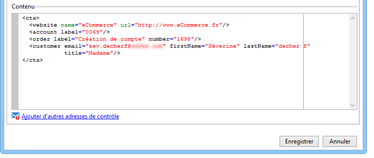 Vérifiez que le message est bien parvenu à l'adresse de contrôle et que son contenu est conforme à ce que vous aviez paramétré.