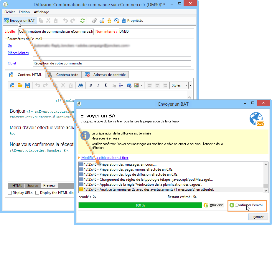 L'envoi d'un BAT engage le même processus que pour une diffusion standard. Toutefois, avec les messages transactionnels, vous devez effectuer au préalable les opérations suivantes :