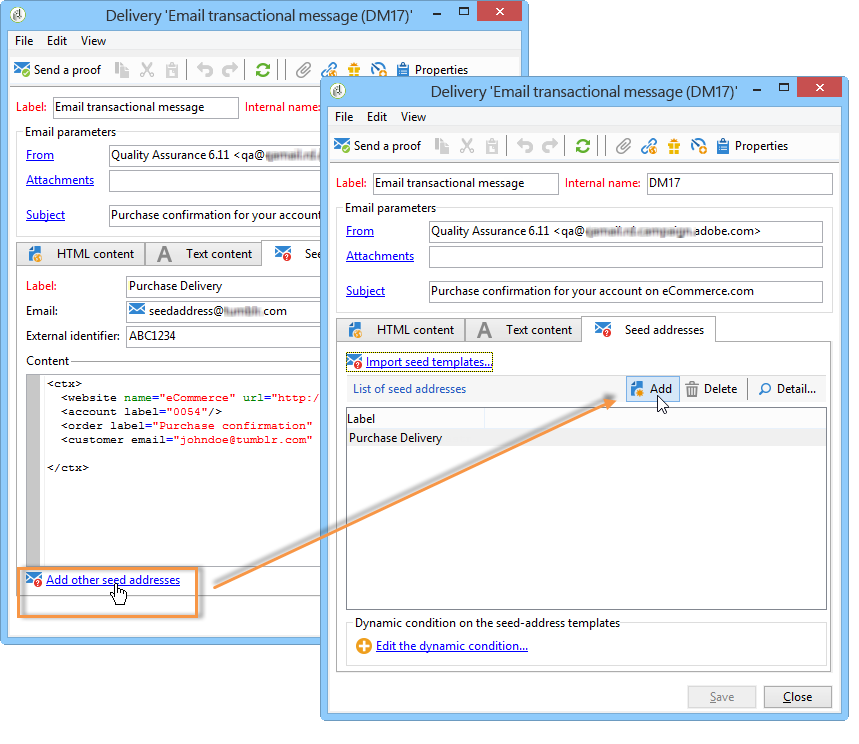 시드 주소를 사용하면 이메일 또는 SMS 게재 전에 메시지 미리 보기를 표시하고 증명을 전송하며 메시지 개인화를 테스트할 수 있습니다. 시드 주소는 게재에 연결되므로 다른 게재에 사용할 수 없습니다.