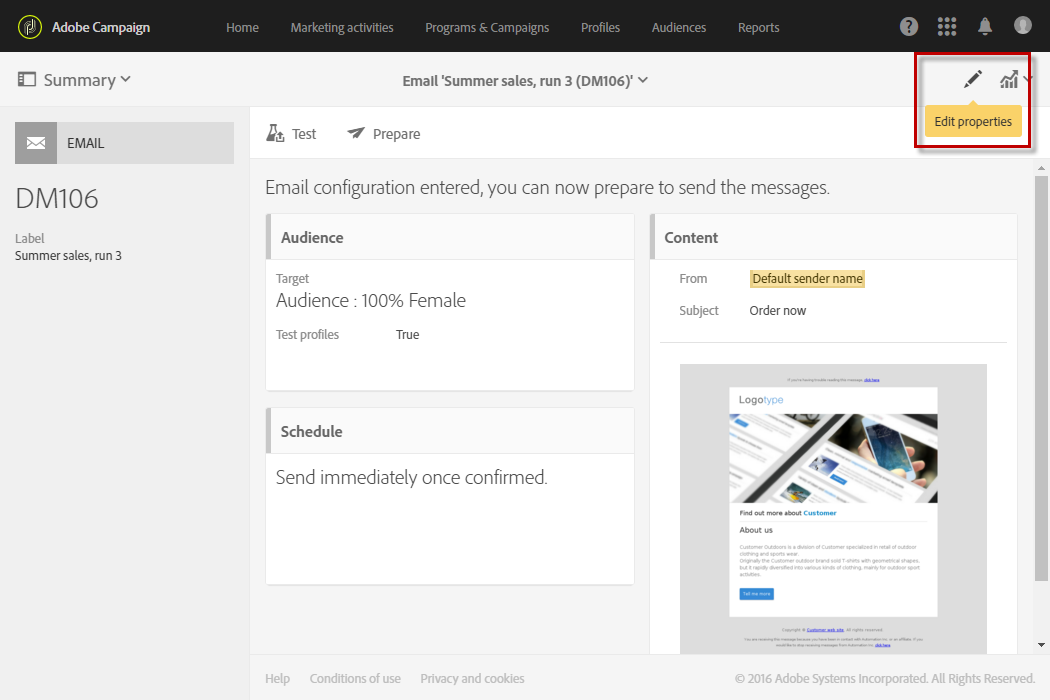 모든 회사에는 브랜드 시각적 및 기술적 지침이 있습니다. Adobe Campaign을 사용하면 로고에서부터 이메일 발신자, URL 또는 도메인과 같은 기술적 측면까지 일관된 브랜드를 고객에게 제시하기 위해 일련의 사양을 정의할 수 있습니다.