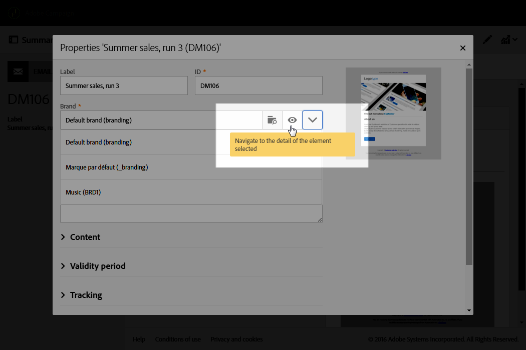 선택한 브랜드의 구성 방식을 보려면 Navigate to the detail of the element selected 아이콘을 클릭합니다.