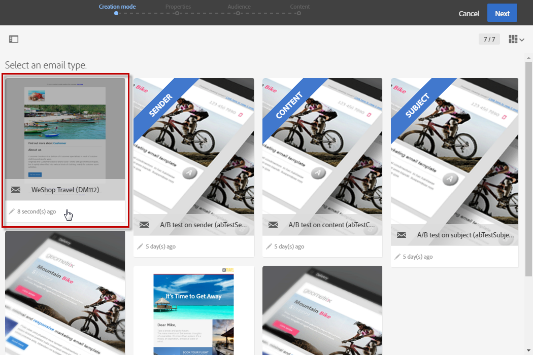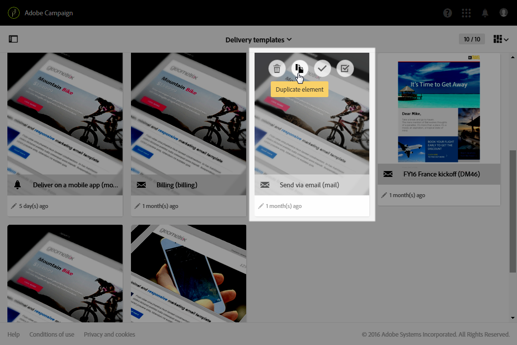 고급 메뉴 Resources > Templates > Delivery templates에서 기본 제공 템플릿을 복제하여 새 게재 템플릿을 구성합니다.