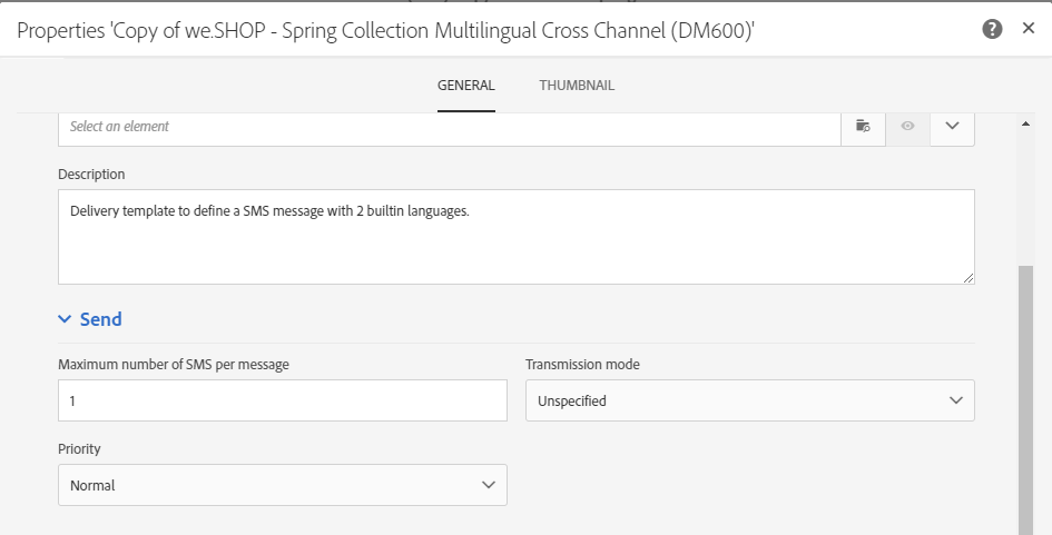 이 섹션에서는 SMS 게재 또는 SMS 템플릿의 속성 화면에 있는 SMS 고유 매개 변수 목록을 자세히 설명합니다.