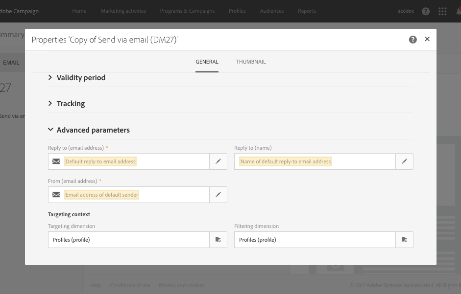 에서 Advanced parameters 이메일 템플릿 속성의 섹션, From (email address) 필드는 보낸 사람의 주소에 해당합니다.