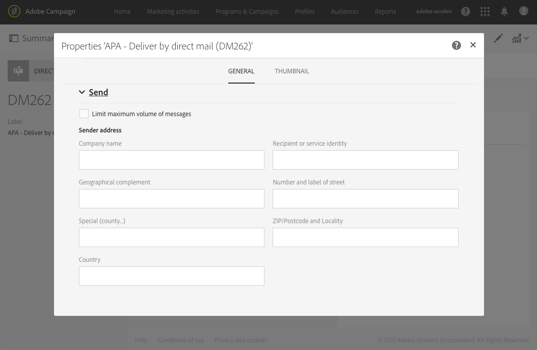우편 주소 정보는 DM 공급자에게 필수이므로 프로필에 포함했는지 확인하십시오. 또한 프로필 정보에 있는 Address specified 상자를 선택했는지 확인하십시오. 권장 사항을 참조하십시오.