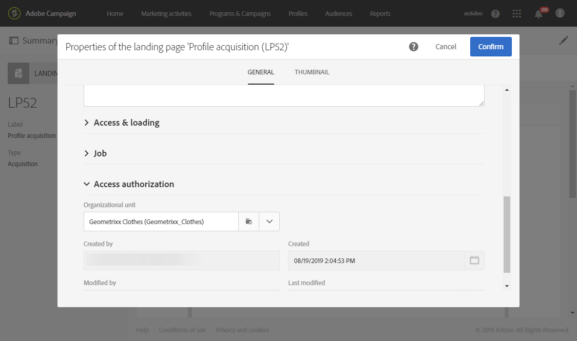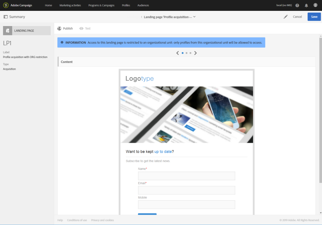 랜딩 페이지에 대한 액세스는 식별된 방문자(예: Campaign에서 보낸 메시지의 링크를 통해 들어온 방문자) 또는 특정 조직 단위로 제한할 수 있습니다.