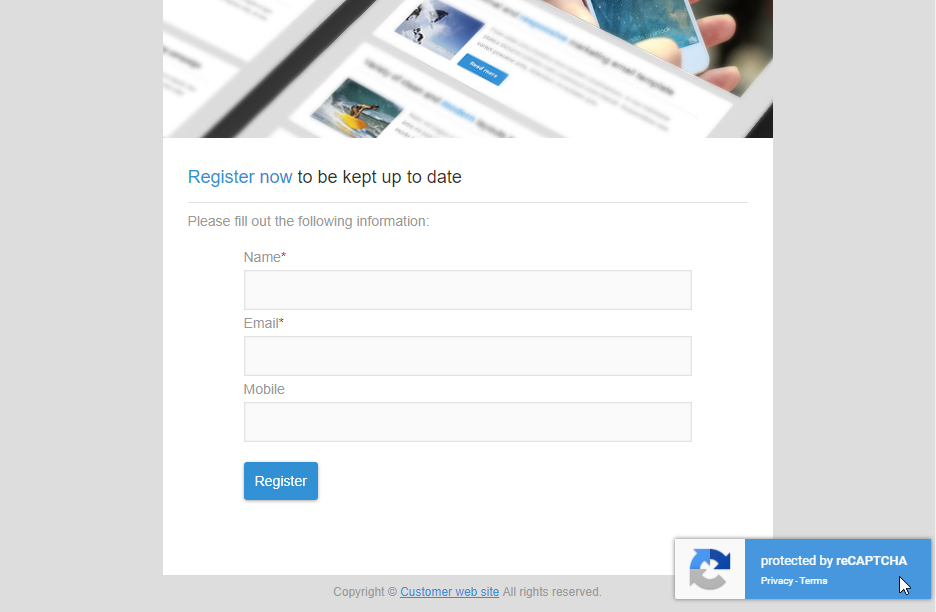 이제 랜딩 페이지 하단에 Google reCAPTCHA를 표시하도록 설정했습니다.