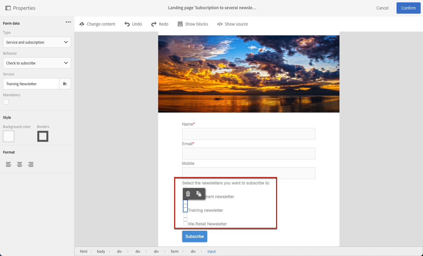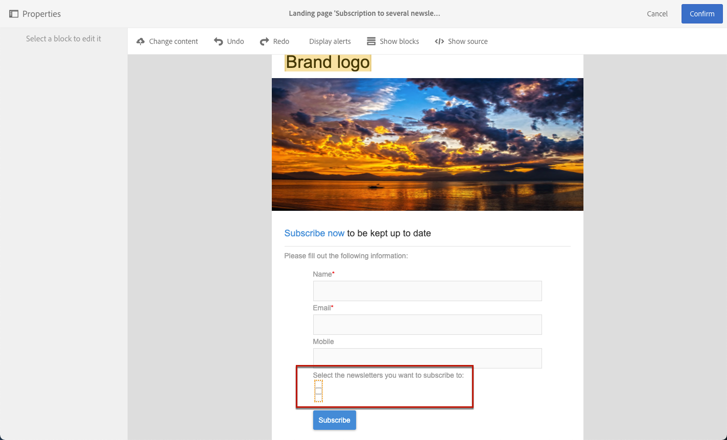 랜딩 페이지가 게시되면 사용자는 여러 확인란을 선택하여 동일한 페이지에서 여러 뉴스레터에 가입할 수 있습니다.
