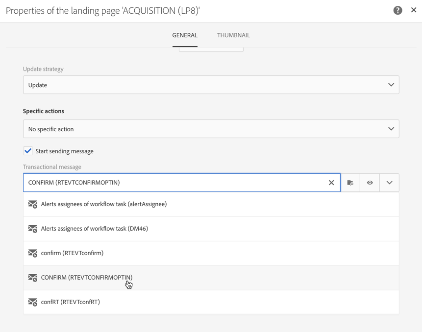 연결된 드롭다운 목록에서 생성한 CONFIRM 트랜잭션 메시지 템플릿을 선택합니다.