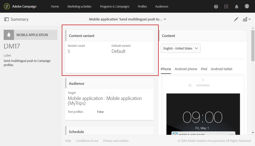 이제 컨텐츠 변형이 포함된 파일을 업로드한 후 푸시 알림 게재에서 다른 변형을 미리 볼 수 있습니다.