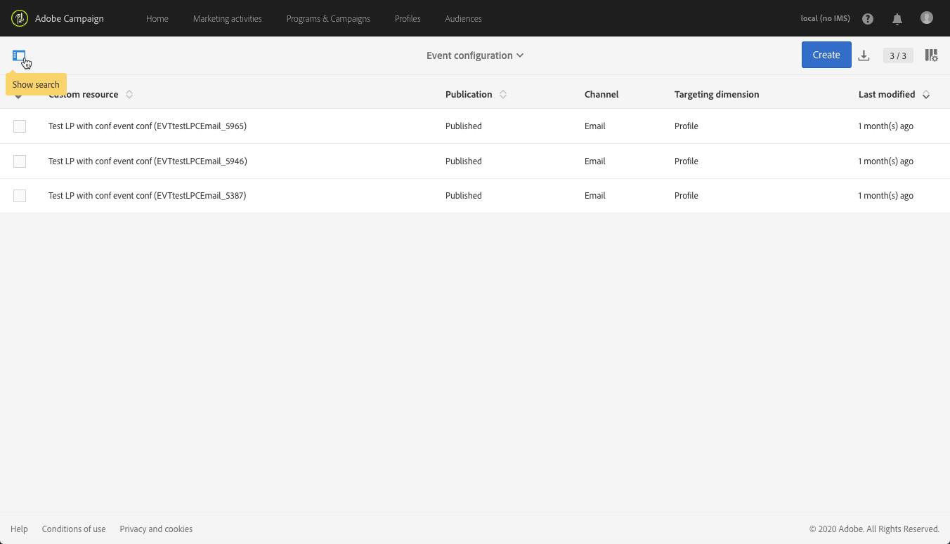 을(를) 클릭합니다. Adobe 왼쪽 상단 모서리에서 로고를 선택한 다음 Marketing plans > Transactional messages > Event configuration.