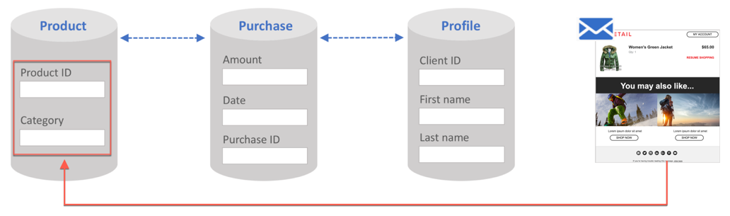 이 컬렉션은 트랜잭션 전자 메일에서 사용하여 추가할 수 있습니다. 제품 목록 메시지 컨텐츠에 추가합니다(예: 제품 목록(가격, 참조 번호, 수량 등). 의 각 제품에서 사용할 수 있습니다.