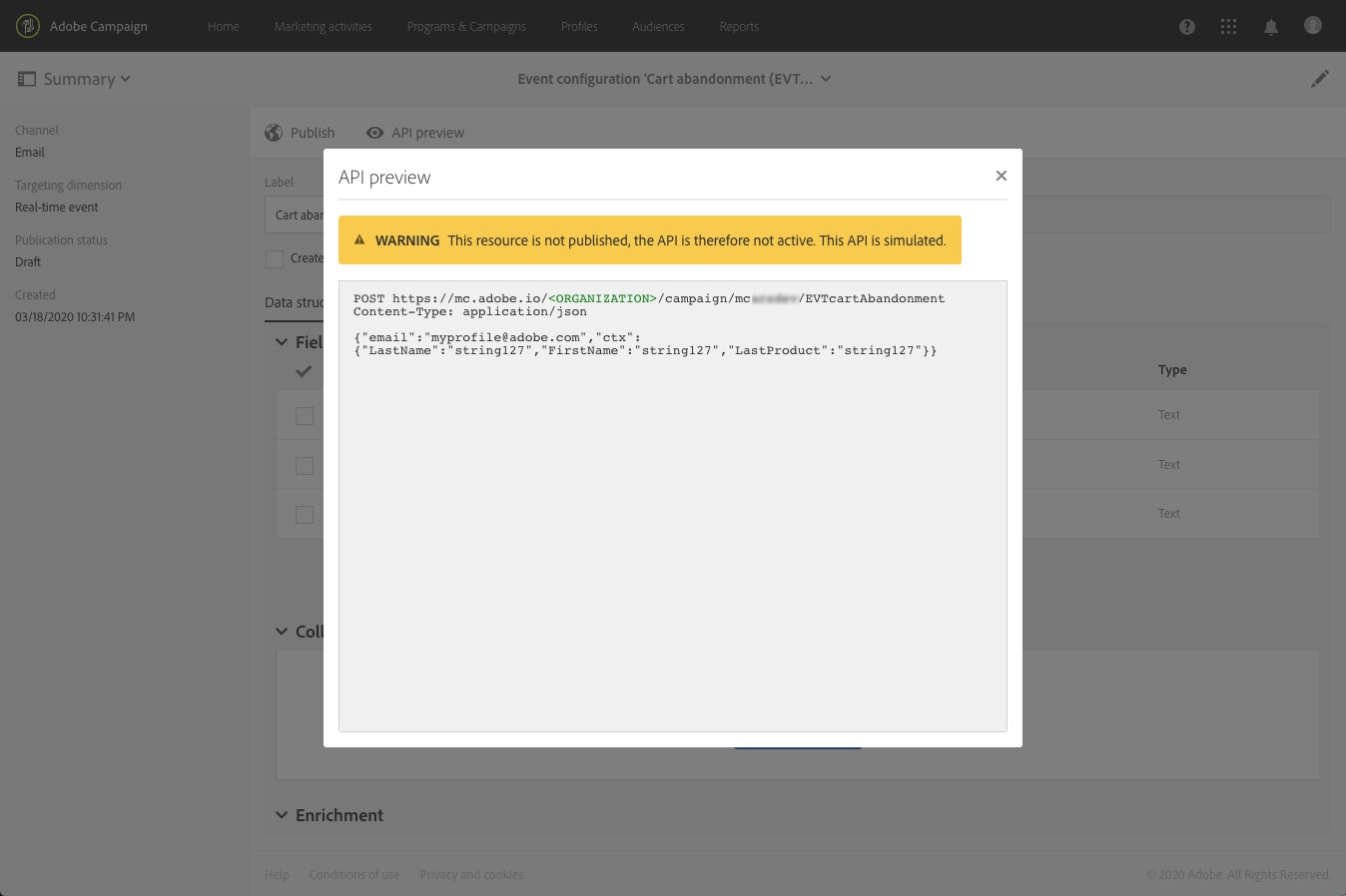 이벤트가 게시되면 프로덕션에서 API의 미리 보기를 볼 수도 있습니다. 자세한 내용은 이벤트 트리거 통합.