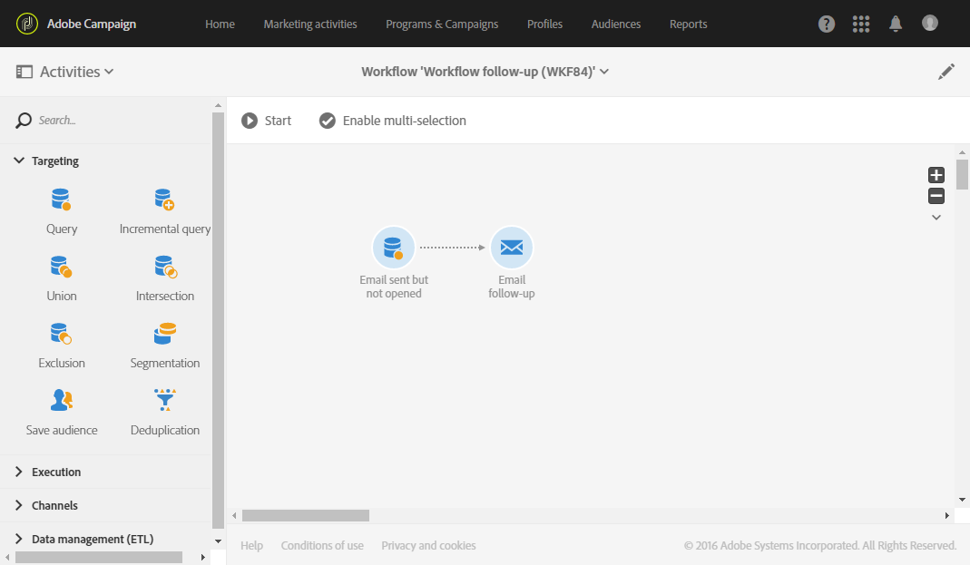 마케팅 활동 목록에 액세스하고 새 워크플로우를 만듭니다.