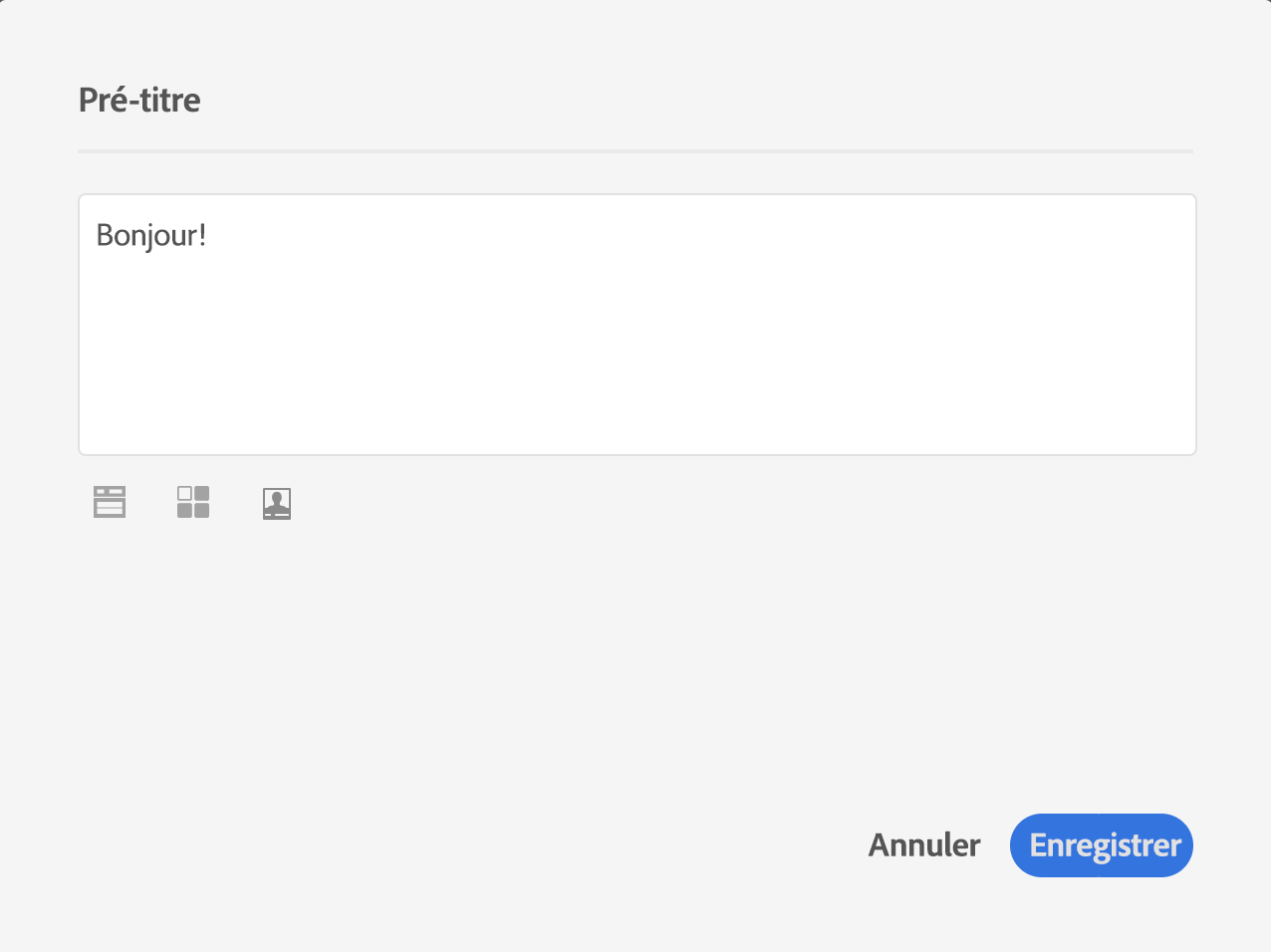 Vous pouvez ajouter un bloc de contenu, un contenu dynamique ou un champ de personnalisation dans le contenu du pré-titre.
