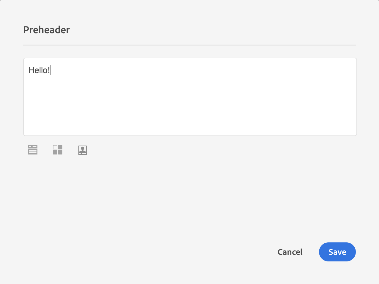 을(를) 선택합니다 Preheader 편집 상자를 열고 컨텐츠를 완료합니다.
