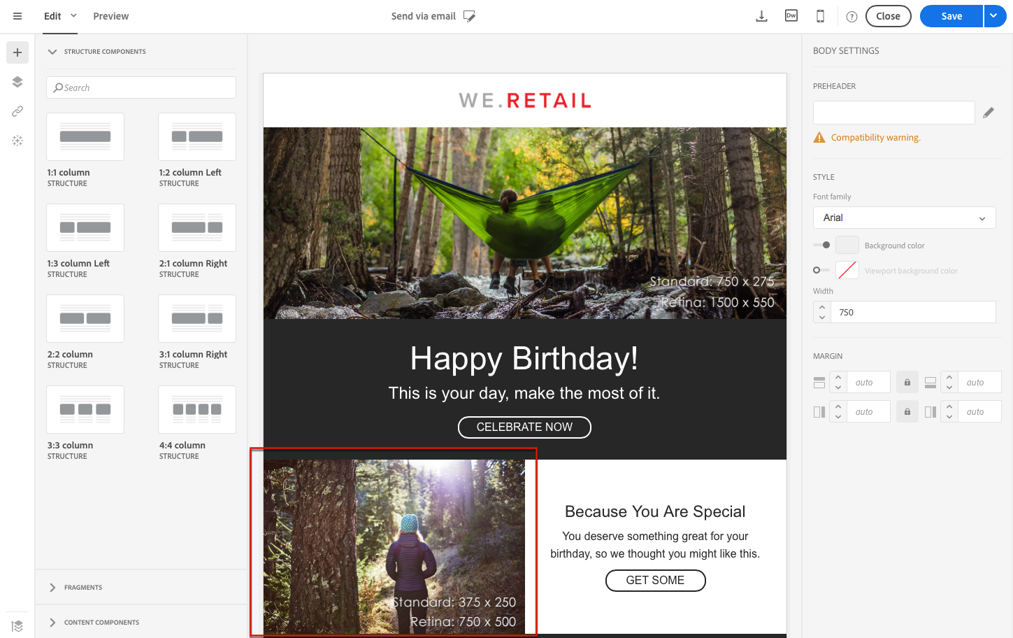 HTML 코드를 수정하면 이메일의 응답성이 손상될 수 있습니다. Preview 단추를 사용하여 테스트하십시오. 메시지 미리 보기를 참조하십시오.