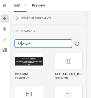 이제 이 조각을 이메일 Designer으로 빌드된 모든 이메일에서 사용할 수 있습니다. 팔레트의 Fragments 섹션 아래에 나타납니다.