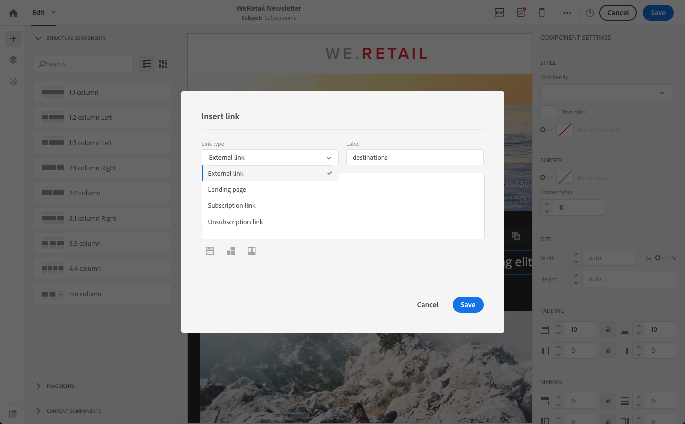 편집기를 사용하면 HTML 컨텐츠 요소에 링크를 삽입하여 이메일 또는 랜딩 페이지를 개인화할 수 있습니다.