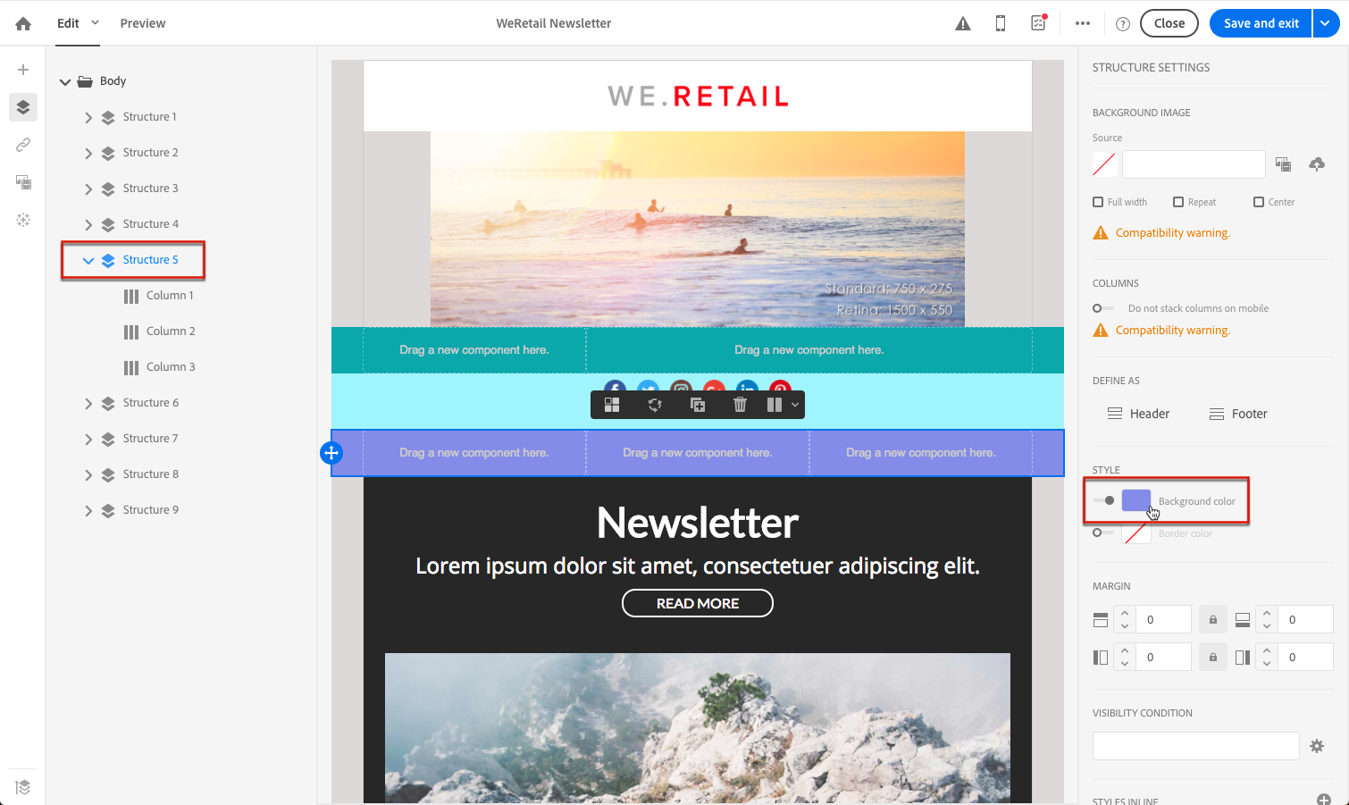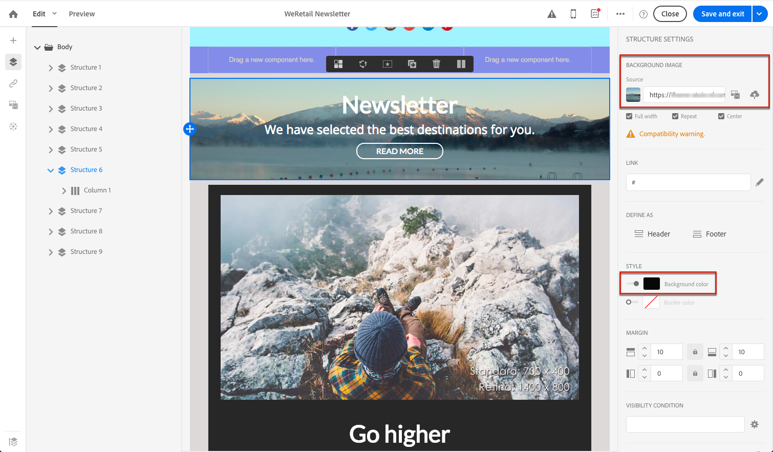 이메일 디자이너를 사용하여 배경을 설정하는 방법은 다음과 같습니다.