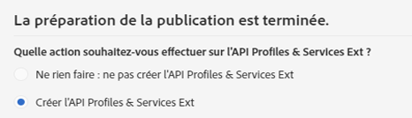 Si l'API n'a pas encore été publiée (en d'autres termes, si vous n'avez jamais étendu la ressource ou si vous n'avez jamais coché cette option pour cette ressource ou une autre), vous avez le choix de la créer ou non.