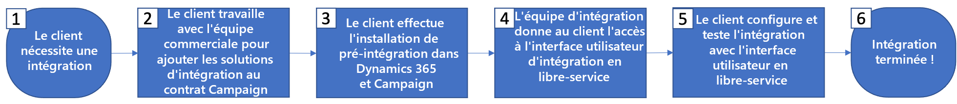 Étape 3 - Exécuter les étapes préalables à l’intégration pour Dynamics 365 et Campaign. Voir Configurer cette intégration.