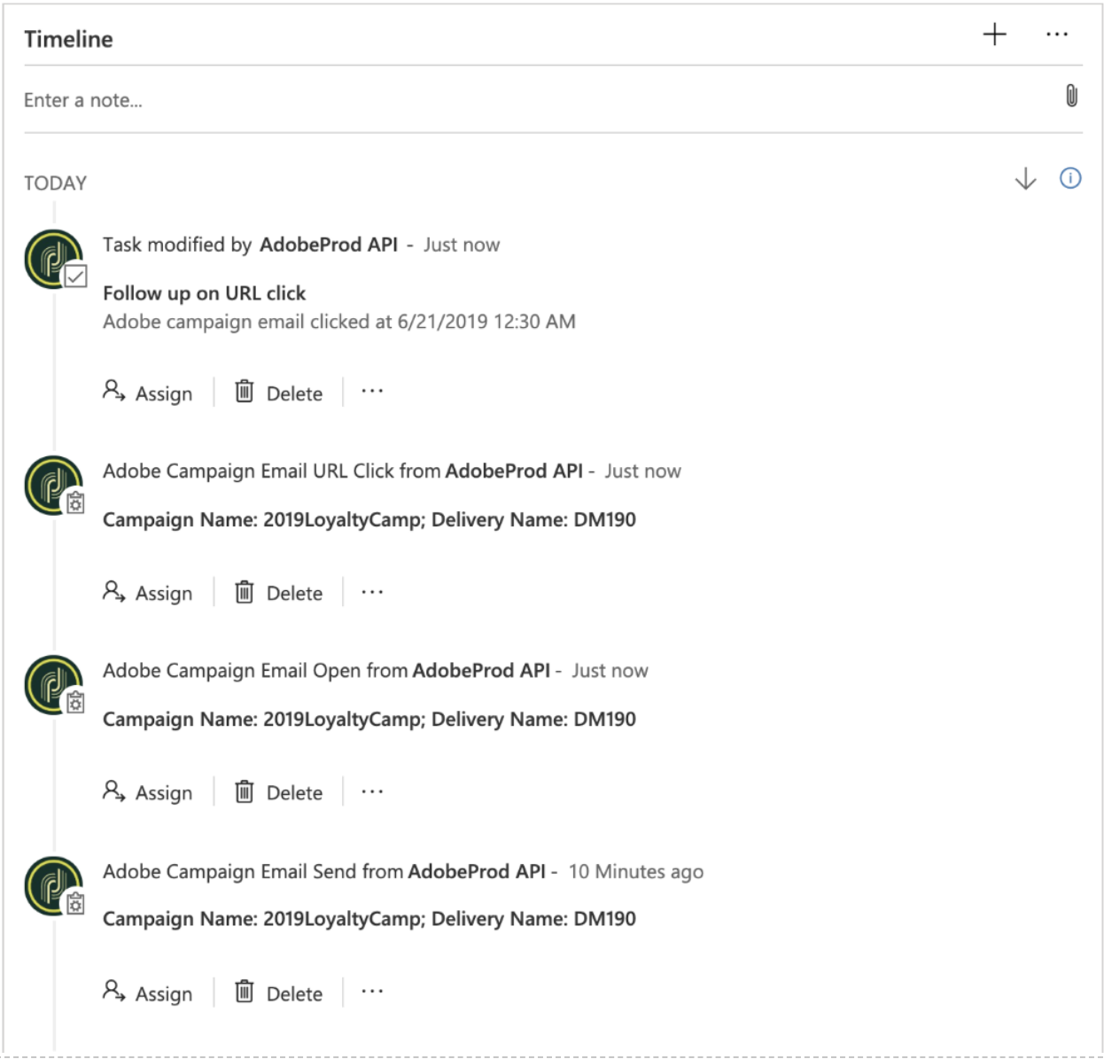 L’application Adobe Campaign Microsoft pour Dynamics 365 dans AppSource devra être installée dans votre instance Microsoft Dynamics 365 afin d’afficher ces événements. En savoir plus.