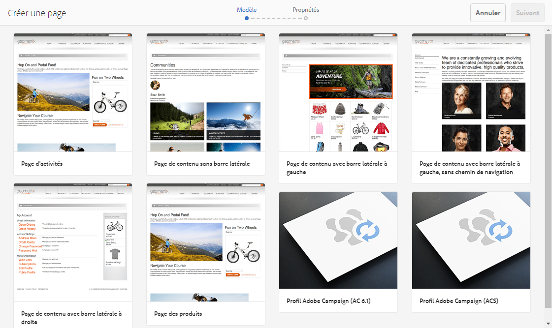 Dans votre site AEM, créez une page basée sur le modèle Profil Adobe Campaign.