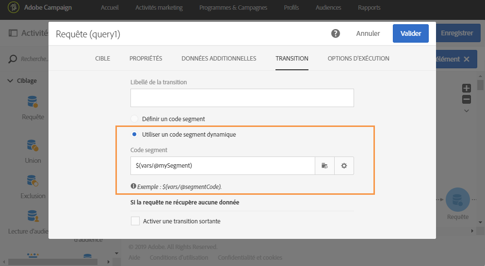 Activité Lecture d’audience : définissez l’audience à cibler en fonction de variables d’événements. Pour plus d’informations sur l’utilisation de cette activité, consultez cette section.