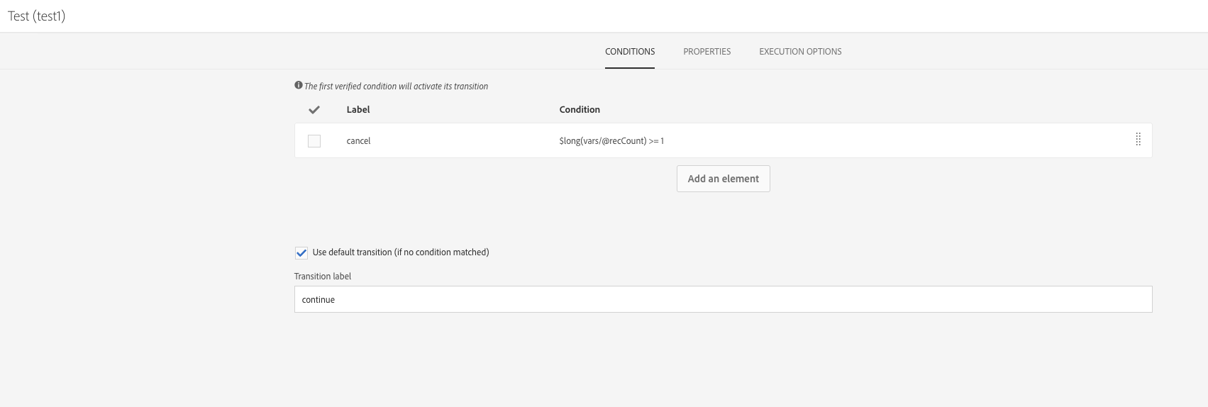 추가 Test 활동에서 반환되는 보류 중인 작업 수를 확인하기 위해 Query 활동. 이렇게 하려면 두 개의 아웃바운드 전환을 구성합니다.