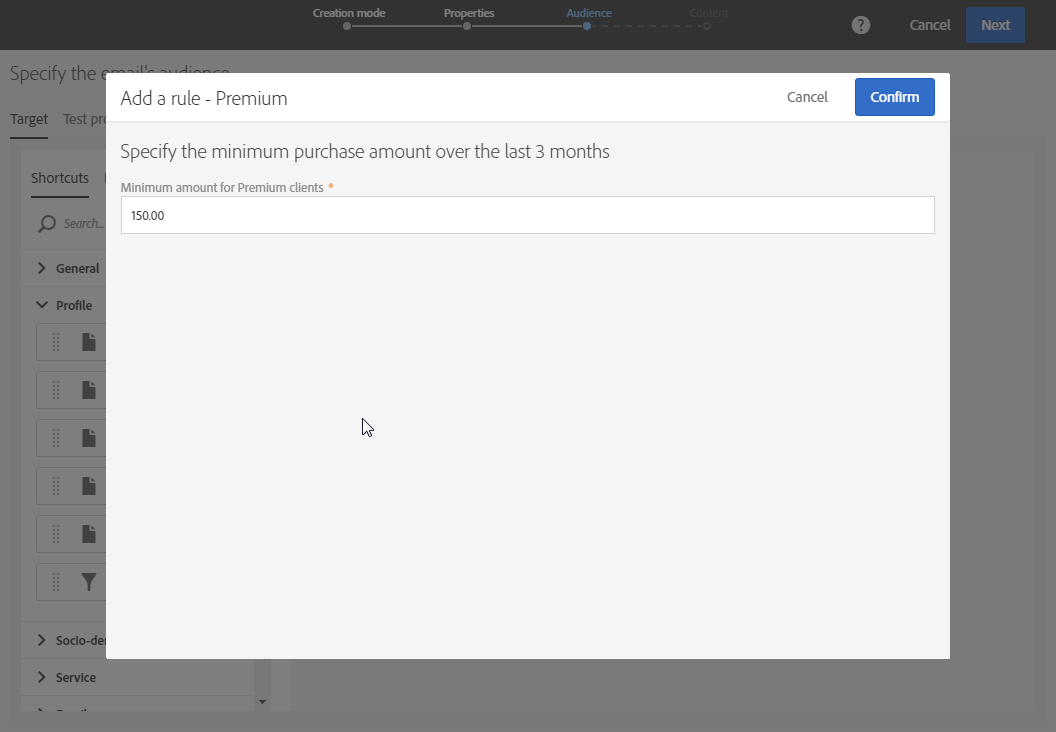 이 기능을 사용하면 사전 정의된 필터 및 규칙을 사용하여 수신자를 더 잘 타겟팅하기 위한 모집단을 만들 수 있습니다.