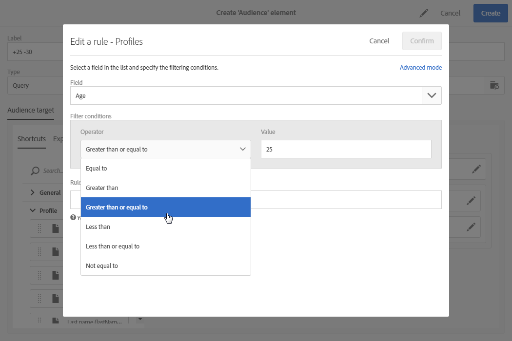 쿼리 편집기는 Adobe Campaign 데이터베이스에 포함된 데이터를 필터링할 수 있는 마법사입니다.
