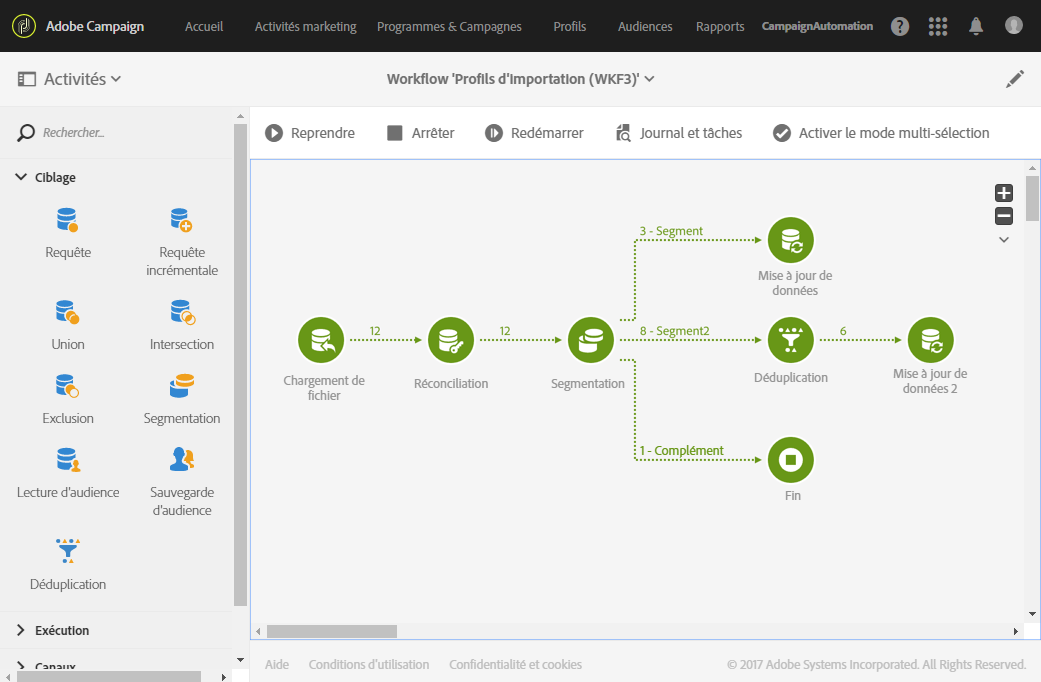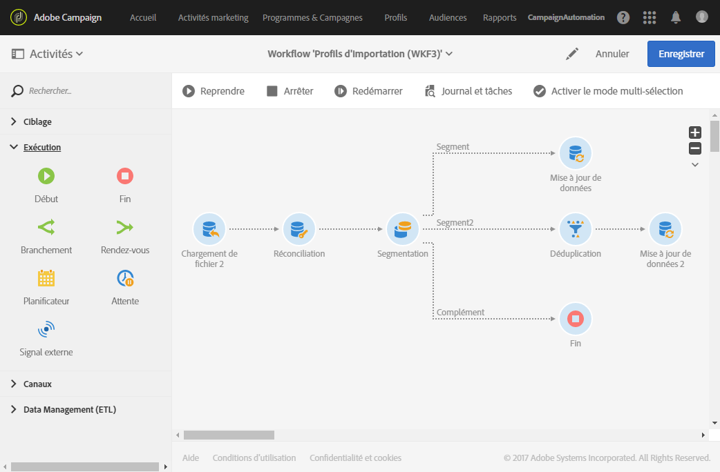 Cet exemple montre comment pré-paramétrer un workflow qui pourra être réutilisé pour importer des profils en provenance d’un CRM dans la base de données Adobe Campaign.