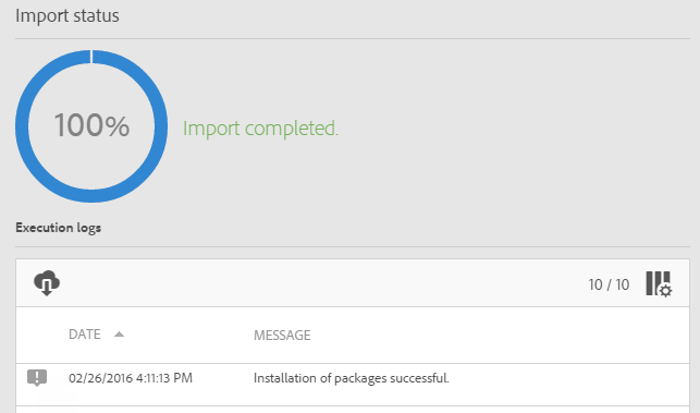 첫 번째 내보내기에서 파일을 가져올 새 패키지를 만들려면 Administration/Deployment/Package imports 메뉴로 이동합니다.