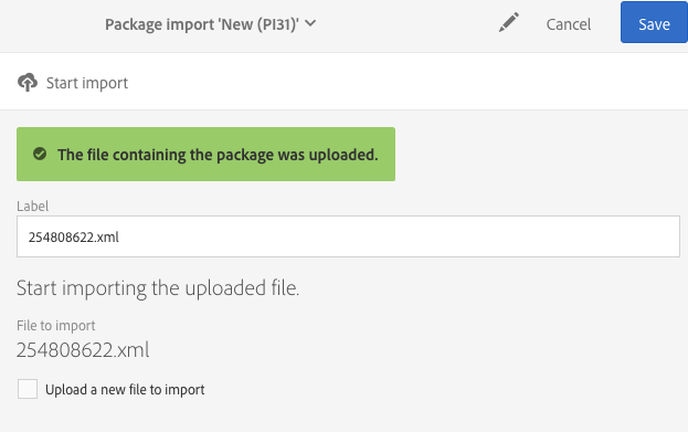 수동 패키지 가져오기는 두 단계로 구성됩니다. 먼저 파일을 업로드한 다음, 해당 파일의 콘텐츠를 가져올 수 있습니다.