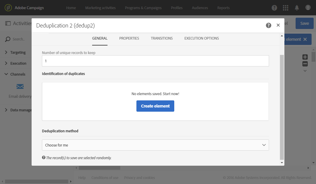 일반적으로 Deduplication 활동은 다음의 타겟팅 활동 또는 파일을 가져온 후 타겟팅된 데이터를 사용할 수 있는 활동 전에 사용됩니다.