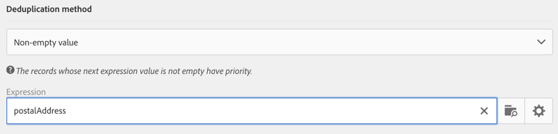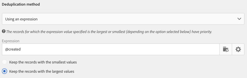 Non-empty value: 선택한 표현식의 값이 비어 있지 않은 레코드를 우선 순위로 유지할 수 있습니다.