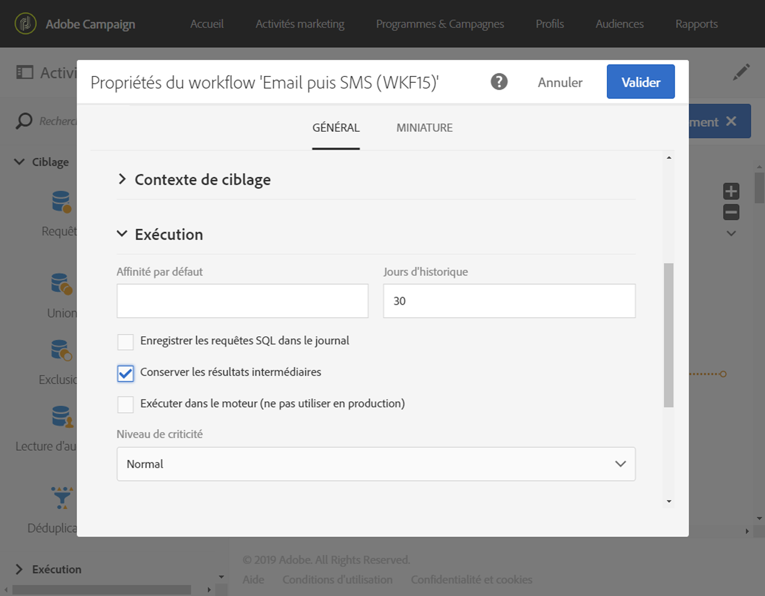 La conception et l'exécution des workflows doivent être effectuées par un utilisateur expérimenté Adobe Campaign.