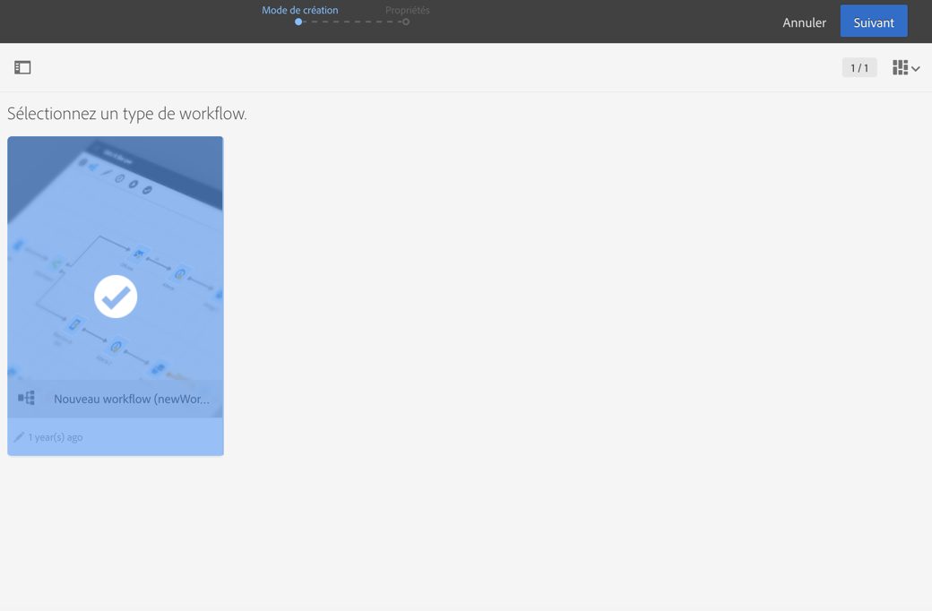 Une fois que vous avez commencé la création d’une activité marketing de type workflow, choisissez le modèle que vous souhaitez utiliser.