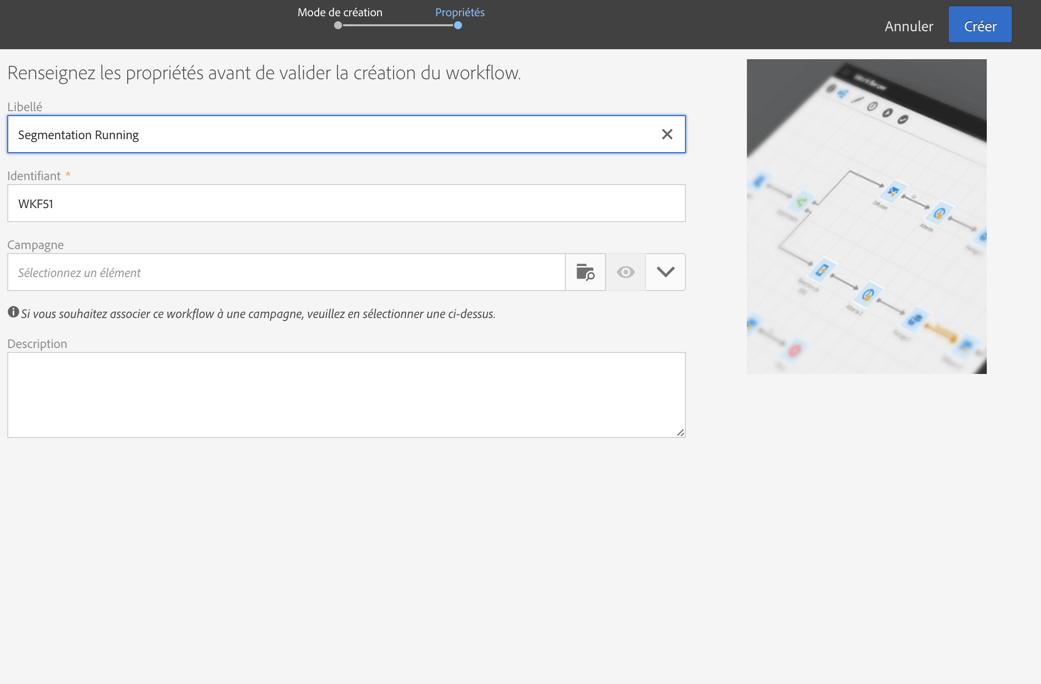 Pour trouver plus facilement les workflows qui ne fonctionnent pas de la manière attendue et résoudre les problèmes, Adobe recommande d’attribuer aux workflows des libellés et des noms adéquats. Renseignez également le champ de description du workflow pour que l’opérateur puisse facilement comprendre son objectif.