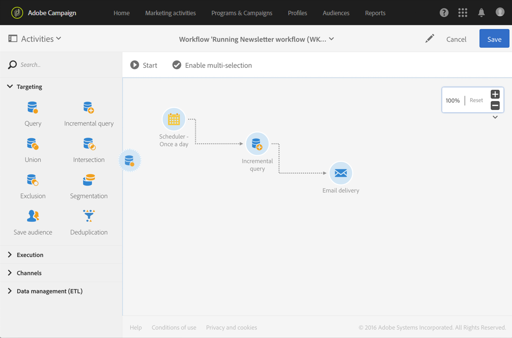 작업 공간을 사용하면 워크플로우 활동을 동일한 워크플로우에 복사 붙여넣거나 동일한 Campaign 인스턴스의 다른 워크플로우에 복사 붙여넣을 수 있습니다.