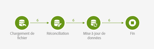 Une activité Réconciliation créé les liens entre les données importées et la base de données pour que les données de transactions soient bien connectées aux profils et produits.