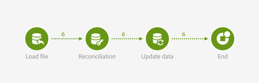 조정 활동은 가져온 데이터와 데이터베이스 사이에 링크를 만들어 트랜잭션 데이터가 프로필과 제품에 적절하게 연결되도록 합니다.