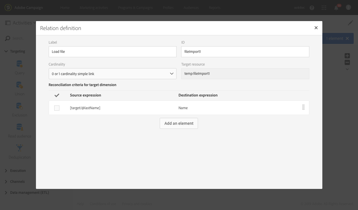 끌어서 놓기 파일 로드 활동을 통해 프로필에 데이터를 할당합니다. 이 예제에서는 데이터베이스의 프로필 일부에 해당하는 계좌 번호가 들어 있는 파일을 로드합니다.