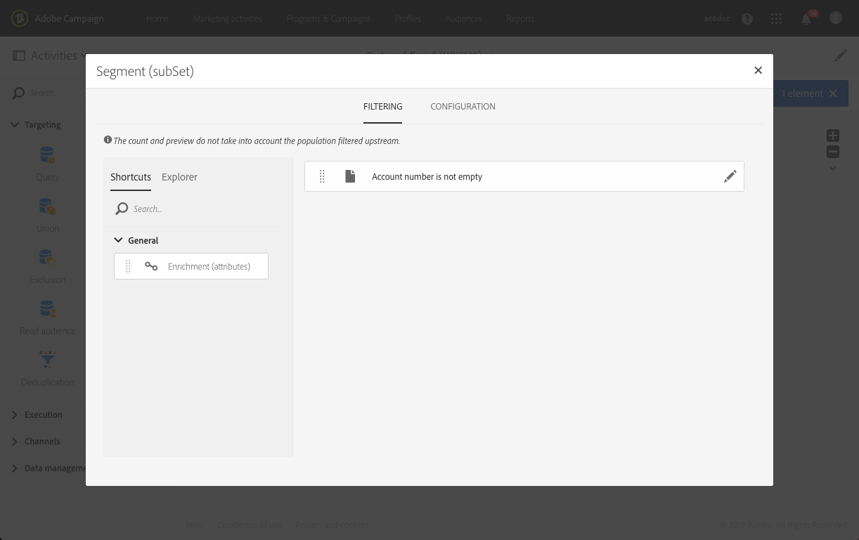 끌어서 놓기 세그먼테이션 활동을 워크플로우에 끌어와 주요 타겟을 세분화합니다.