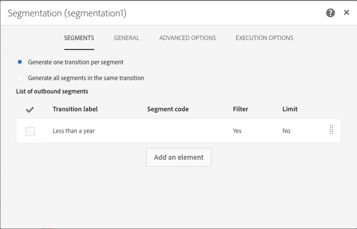 - Advanced Options에서 Generate complement을(를) 선택하여 나머지 수신자를 타겟팅하는 세그먼트를 만드십시오.